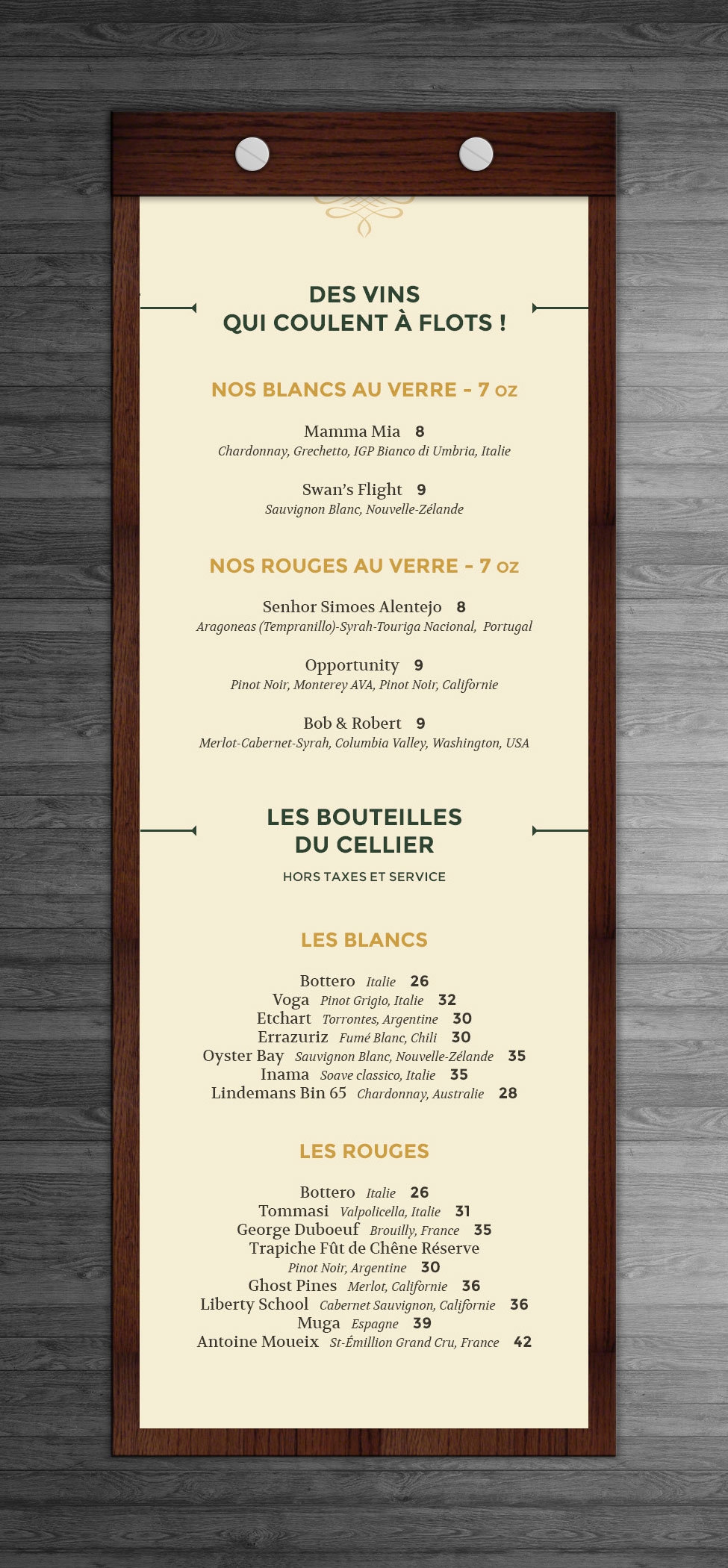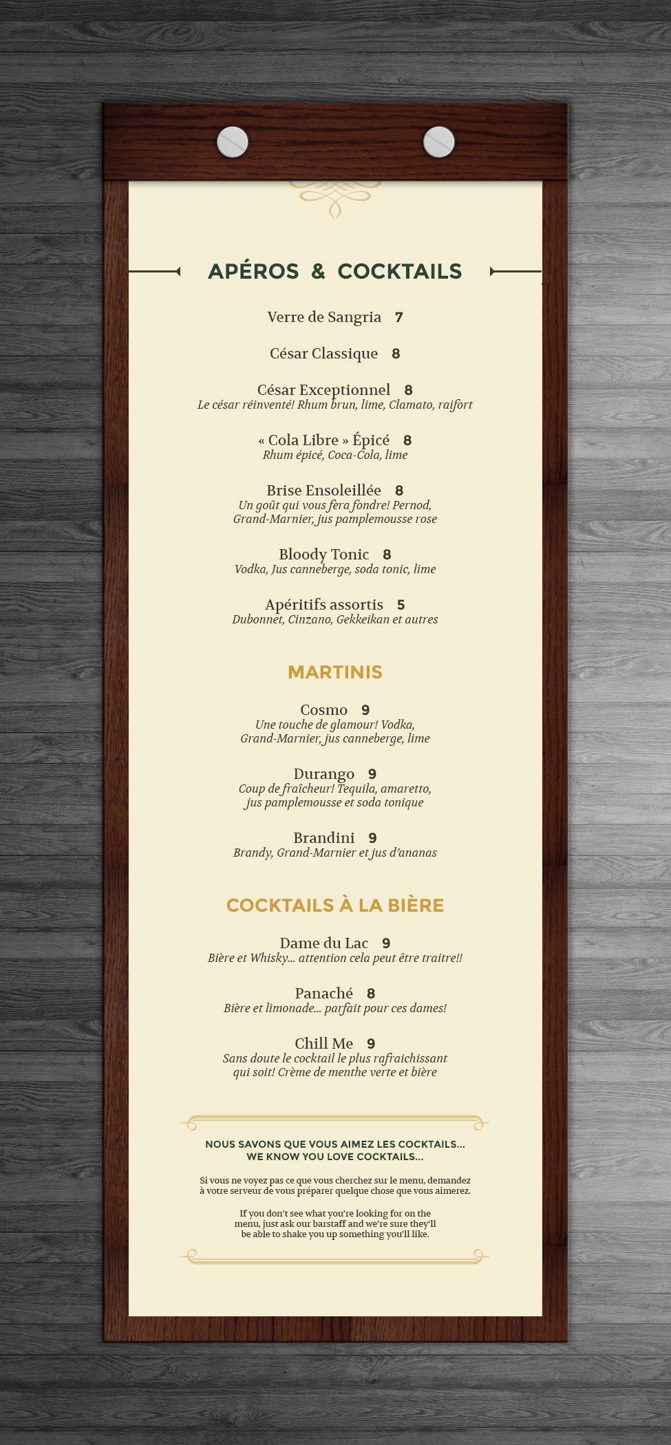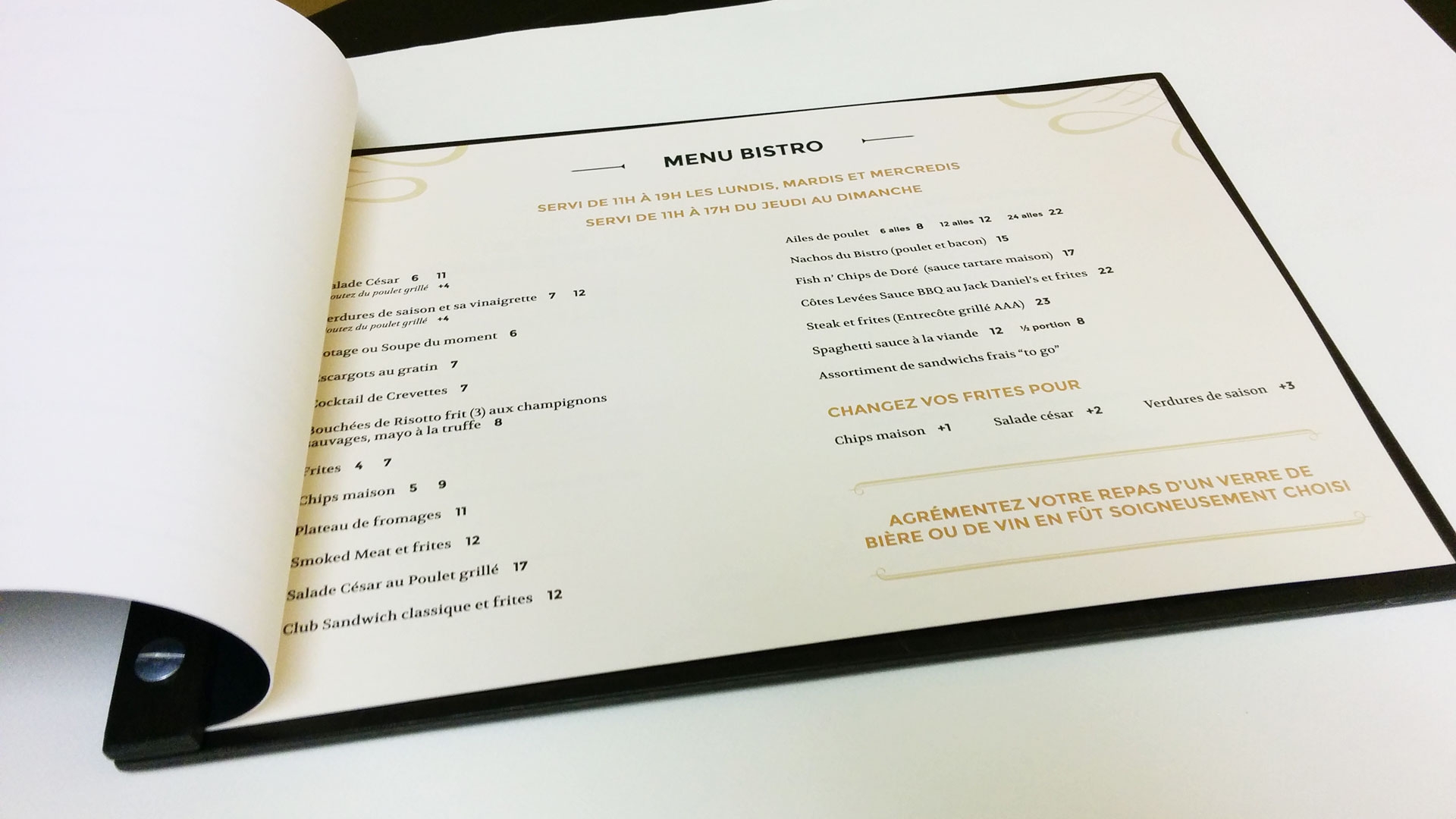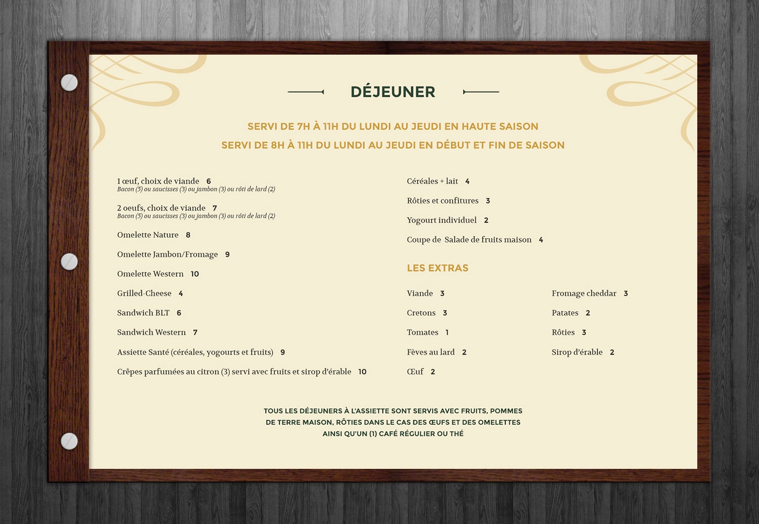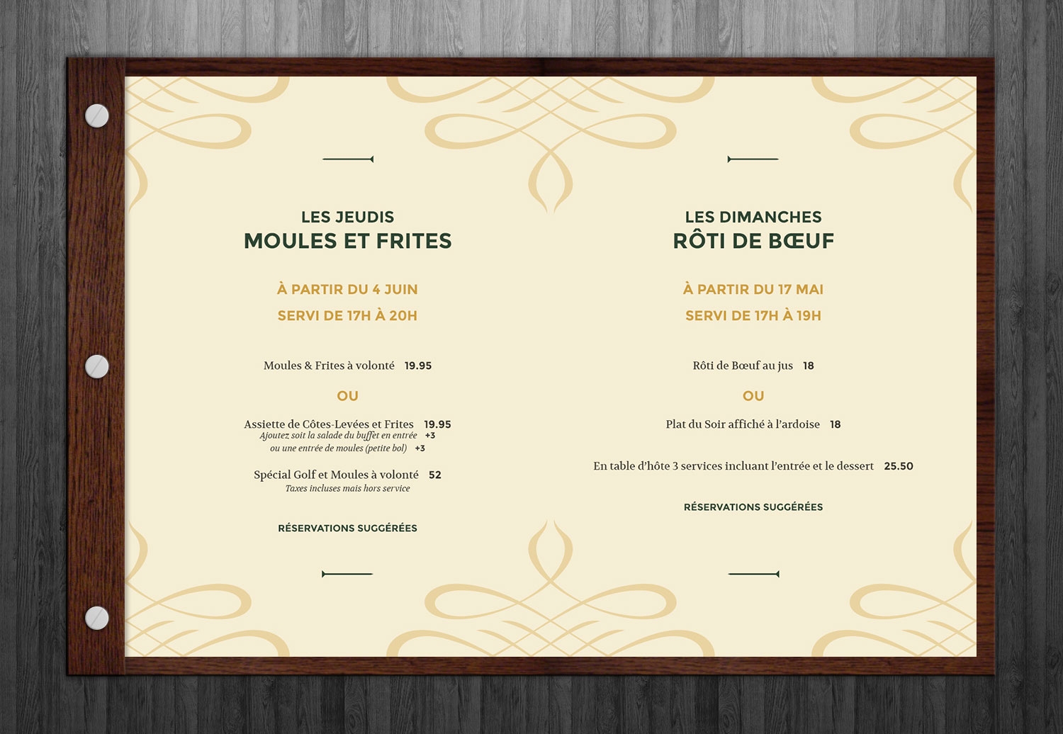 Identité visuelle, menu et carte des breuvages du bistro du Golf Royal Papineau / Projet réalisé en partenariat avec Projextra